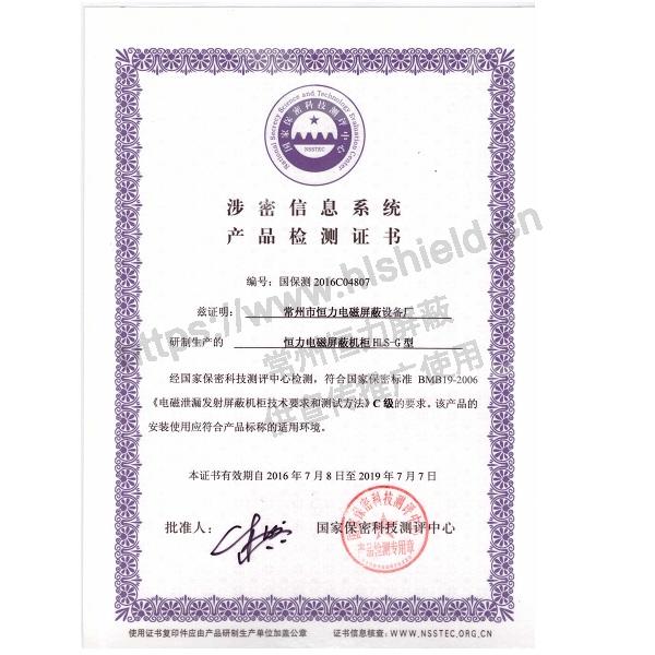1. 具有國家保密局BMB19-2006《電磁泄露發射屏蔽機柜技術要求和測試方法》C級認證的檢測證書及檢測報告(包含新增加功能:散熱、溫濕度監控報警、屏效監控報警功能檢測)。