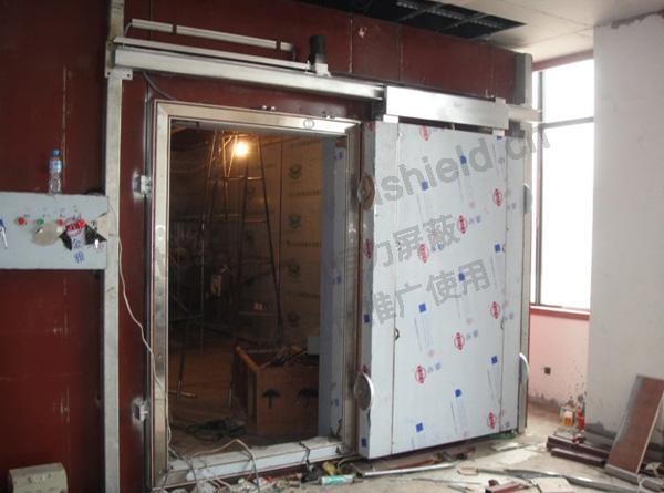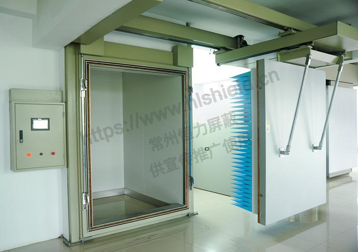 屏蔽門運動方式為:關門時首先橫向平移,然后縱向前行,屏蔽門運動到位后,四個斜楔鎖定機構工作,使門扇緩緩壓入門框上的簧片槽中形成電磁密封腔。采用雙刀四簧電磁密封結構從而保證屏蔽效能高且穩定可靠。